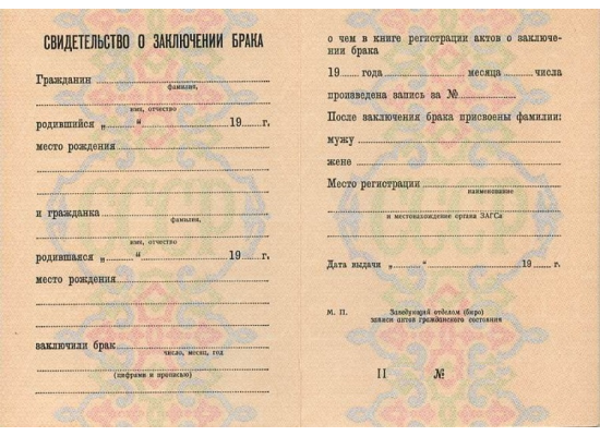 Свидетельство о заключении брака 1971 - 1992 гг.