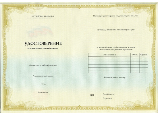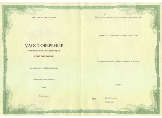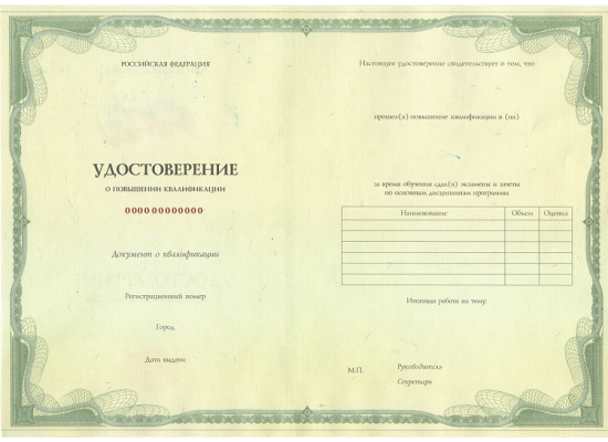 Покупая удостоверение о повышении квалификации 2013 - 2025 гг. в Компании «EXPRESS-Дипломы», вы можете быть уверены в его достоверности и соответствии государственным нормам и требованиям. Мы гарантируем, что наши Удостоверение о повышении квалификации 2013 - 2025 гг. заполняются по учебному плану нужного учебного заведения на нужный год окончания, делается всё по уставу.