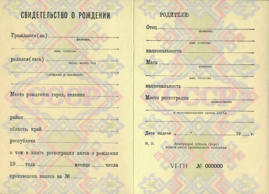 Свидетельства о рождении СССР 1971 - 1989 гг.
