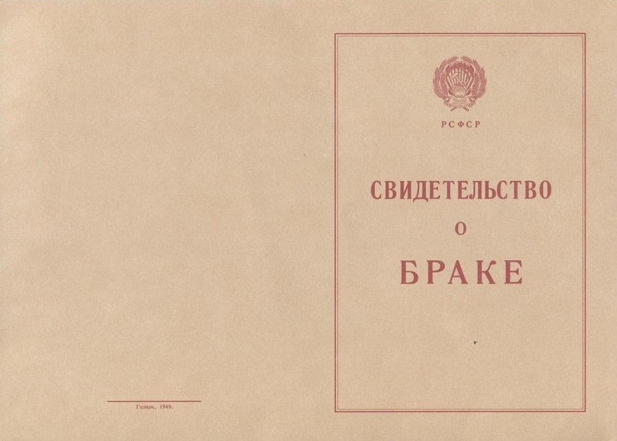 Свидетельство о заключении брака СССР 1940 - 1949 гг.